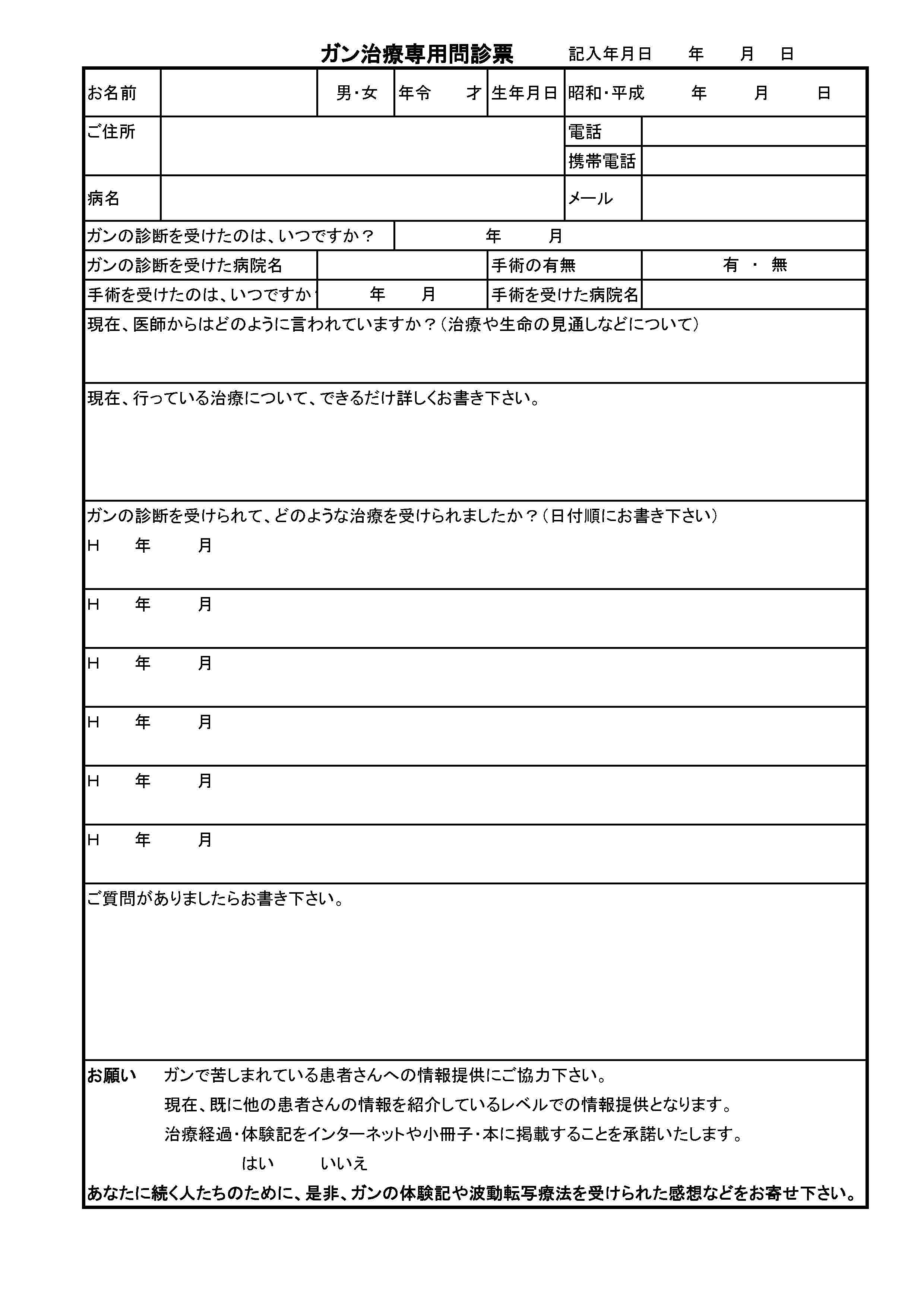 がん治療問診票